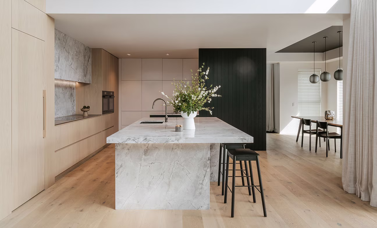 We offer a complete range of high-end materials — granite, marble, Caesarstone, quartz, Roxx, acrylic, stainless steel, timber, and laminate — along with leading door and panel options from Dezignatek, Arborform, Melteca, Formica, Bestwood, and Prime Board.